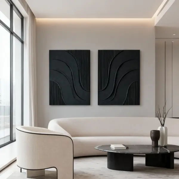 تابلو دیواری شیک راز عمق | طراحی انتزاعی سیاه با بافت برجسته برای دکوراسیون مدرن