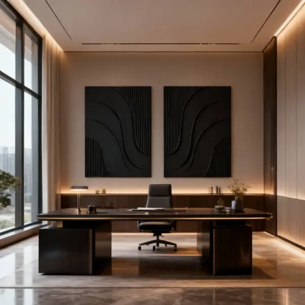 • هنر مفهومی با عمق بالا: طرح‌های نامتقارن و لایه‌بندی‌های تیره، ایجادکننده‌ی یک حس رمزآلود و جاذبه‌ی بصری قوی، مناسب برای افزایش تمرکز در محیط‌های رسمی و مدرن.